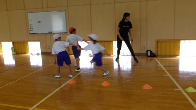 今日は運動会に向けてリレーの練習をしました。「右手でもらって、左手に持ちかえる」練習を意識して行いました。先生からは「本番、夢中になると間違えてしまうから、絶対に間違わないように」と指示があり、児童もバトンのことを意識して取り組んでいました。