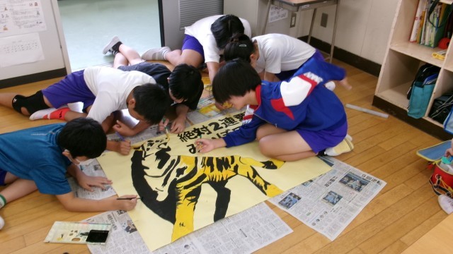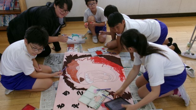 今日は運動会の団のポスターを作成しました。デザインは6年生がアイデアを出し合って、みんなで決定しました。6年生にとっては小学校生活最後の運動会です。思いきり頑張って楽しんでほしいと思います。