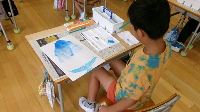 今日は久しぶりの絵の具で「かき氷」を表現しました。水を上手に使いながら、濃淡をつけ、かき氷を上手に表現しました。