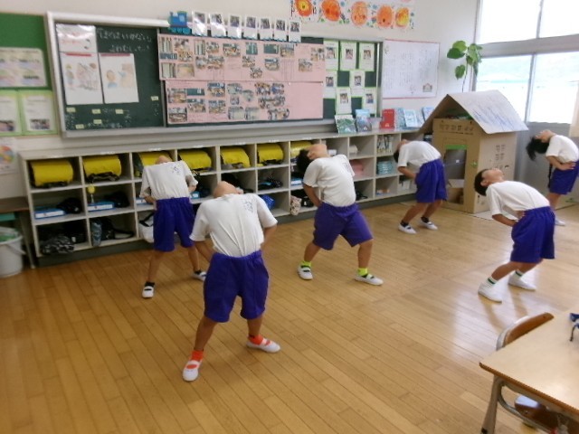 月曜日の朝は、ラジオ体操から始まりました。しっかりと曲げたり伸ばしたりしながら体を動かしました。その後は読書です。落ち着いた気持ちで1週間がスタートしました。