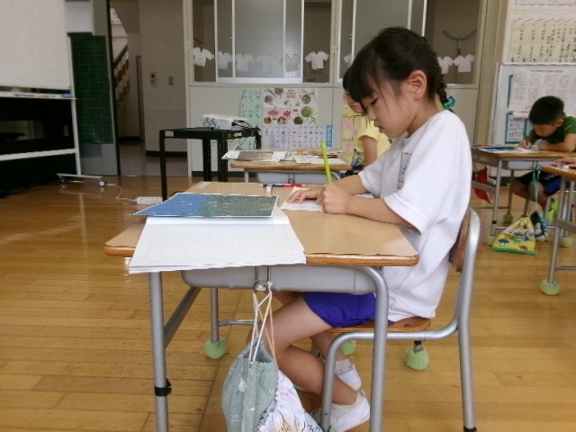 1年生は、海の生き物がどのように隠れているのかを調べてカードにまとめる学習をしていました。