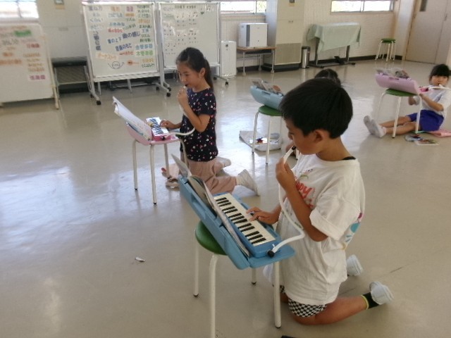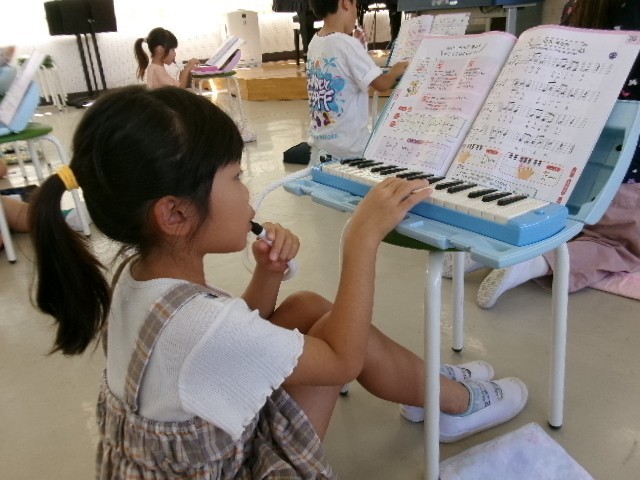 2年生は「山のポルカ」を鍵盤ハーモニカで弾いていました。指づかいに気を付けながらリズムに合わせて演奏していました。