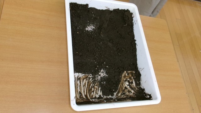 今日のめあては「流れる場所によって、川や河原の様子がちがうのはなぜだろうか」でした。実験の様子から土砂の堆積する違いに気づいた児童たちは、自分の言葉でまとめを行っていました。