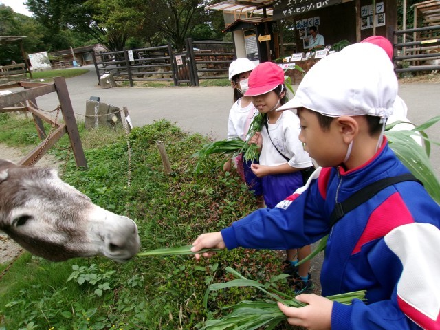 1、2年生は、群馬サファリパークに行きました。アフリカゾーンやアメリカゾーンなど、初めて間近で見る動物ばかりでみんな驚いていました。ふれあいゾーンでは、えさやりに挑戦しました。動物たちに声をかけながら、優しくえさをあげて動物とも仲良くなりました。