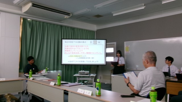 本日、鬼石中学校で第3回学校運営協議会が開催されました。最初に鬼石中学校の生徒会のメンバーから、いじめ防止の活動について紹介があり、その後中学生と懇談をしました。委員から「学校の中でいじめが会ったとき、どうしますか」「SNSの使い方などを話し合っていますか」など、質問がありました。中学生は、率直に自分の意見を言ってくれ頼もしい限りでした。その後、11月21日(金)に開催される「いじめ問題解決に向けた教育懇談会」をどのように運営していくのか、検討しました。