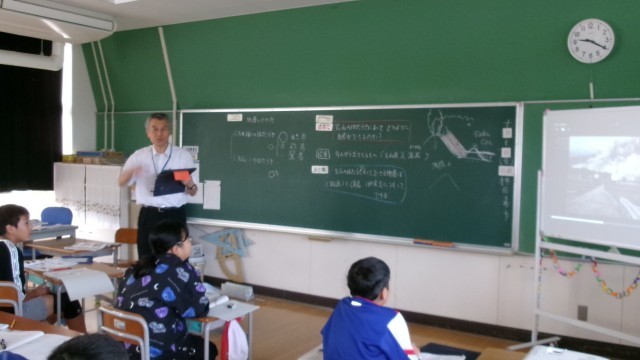 今日のめあては「火山のはたらきによって、どのように地層ができるのだろうか」でした。火砕流の様子の動画を見た場面では、教室中で「怖い」「早く逃げないと」などの声がでて驚いていました。その火砕流から地層がどのようにできるのか、気づきがあったようです。