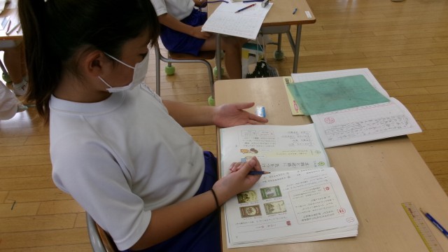 今日は「主語と述語」の学習をしました。教科書の例題に沿って、主語はどこか、述語がどこかについて線を引きながら確かめました。