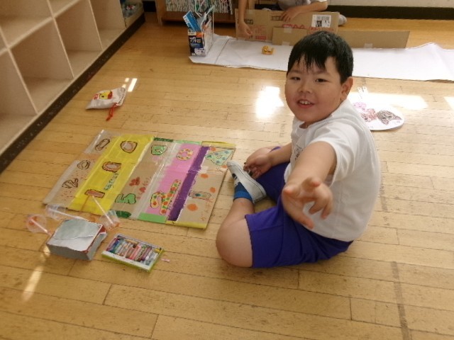 2年生は、「おもちゃランド」をつくり1年生を招待するためにおもちゃをつくっていました。1年生が楽しめるように、丈夫にしたり、楽しい絵を描いたりするなど工夫をしていました。