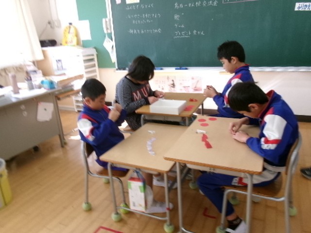 くわの実学級では、「ふれあい交流会」に向けて、プレゼントを考えていました。みんなが喜んでくれる笑顔を思い浮かべながら、協力して活動していました。