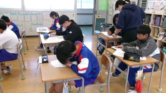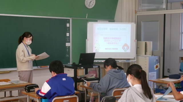 今日の6年生の総合的な学習は、市役所の元気長寿課の方を講師にお招きし、高齢者についてお話をいただきました。身近に接しているおじいさんやおばあさんのことを理解することで、児童自身が「自分たちにできること」を考えていく授業です。今日はたくさんお話を聞けて理解が深まりました。