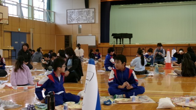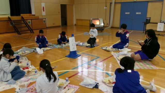 今日は人権集中学習の取組のひとつである「全校給食」を実施しました。たてわり班で給食を食べることで、より班の仲の良さが深まったように思います。