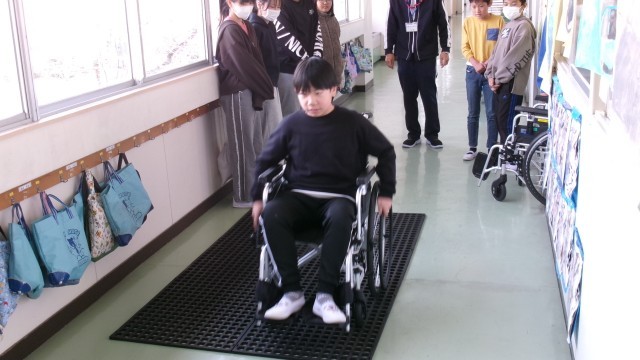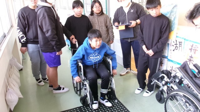 今日は「介護老人保健施設鬼石」の職員の方に来校いただき、施設のことについて詳しくお話を聞いたり、車椅子体験をしたりしました。先週に引き続き、お年寄りについて話を聞いているので、少しずつ理解が深まっているようでした。