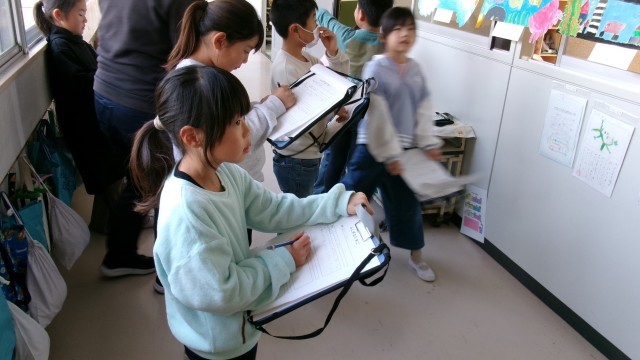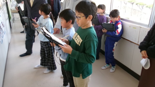 11月27日(木) 2・3年図工「絵を描く会のかんしょう」【進んで学ぶ子】 公開日 2025/11/27 更新日 2025/11/27 できごと 絵を描く会で仕上げたお互いの作品のよさを書く時間でした。お互いの作品を鑑賞して、たくさんのよさを見つけていました。