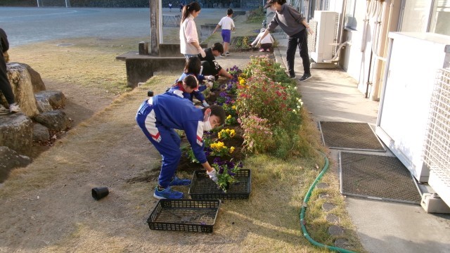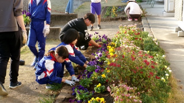 今日美化・園芸委員会では花植をしました。みんなで協力して取り組んでくれました。花のある学校は穏やかな心を育みます。花いっぱいの学校にしていきましょう。