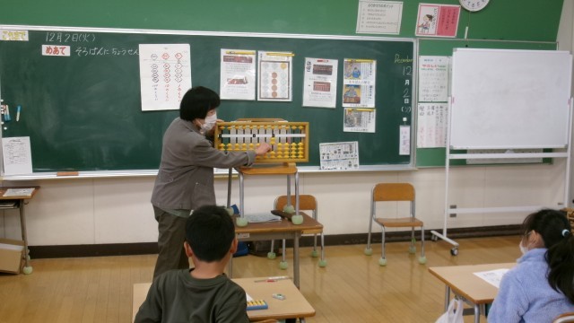 12月2日(火) 3年算数「そろばん教室」【進んで学ぶ子】
