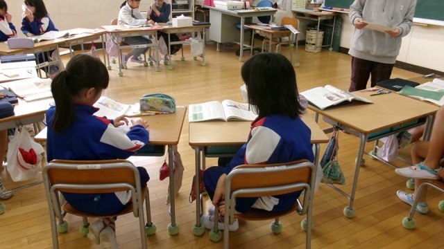 今日の道徳は題材「席が空いているのに」を使って、思いやりや親切について考える授業でした。内容は、白い杖のおじさんが電車の中で立っているときに主人公が席をゆずりたい気持ちになります。そこで、お父さんがその方に席を譲ると声をかけると出口の近くの方がいいと話をしたというお話です。この授業を通して、その人にとって何がよいのか、相手の立場にたって行動することが大切であることに気づくことができた4年生でした。