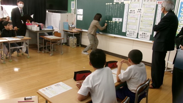 今日は西部地区の学校の先生方をお招きし、地区別人権教育研究協議会の授業公開がありました。4年生の授業は道徳で「グループはずし」でした。主人公がSNSで些細なことから、友達からある友達をグループからはずそうと提案されるお話でした。SNSと日常のやりとりの違いを理解し、SNSでのやり取りには、より注意が必要であることに気づかせる教材でした。SNSを気持ちよく使うために「言葉を大切に使う」「相手がどう考えるのかを想像する」など、相手を意識する発言が聞かれました。意見を伝え合っている児童達の雰囲気が良く、まさに人権教育の授業となりました。