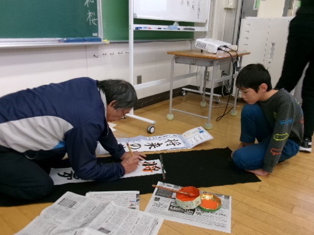 6年生は、書き初めの練習をしていました。6年生は「将来の夢」という文字を書いています。半紙に「将」「夢」など上手く書きたい文字を何度も練習していました。さすが6年生です。ボランティアの先生に丁寧に指導していただきながら、集中して取り組んでいました。