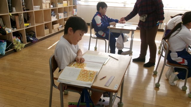 今日は「3年とうげ」の話の内容をじっくり読み取る時間でした。児童達も教科書の叙述に着目しながら、先生から出される問いをじっくり考えていました。