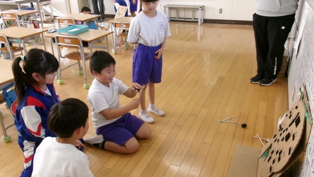 今日は1年生をおもちゃランドに招待して、2年生がつくったゲームでおもてなししました。1年生の笑顔がどの遊び場でも見られ、工夫したものが作成できたのだと思いました。生活科では、遊びの中から様々な学習をしています。