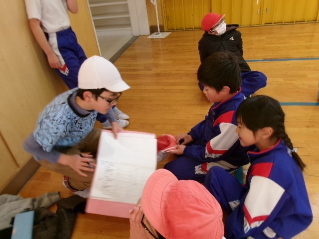 朝マラソンの後は、縦割り班で行う「なかよしタイム」です。6年生の班長さんを中心に遊びを考えて、1~6年生で取り組んでいます。「けいどろ」や「増えおに」、「色おに」「線おに」など、みんな笑顔で遊んでいます。遊びが終わると、振り返りです。6年生が低学年にも優しく声をかけていました。