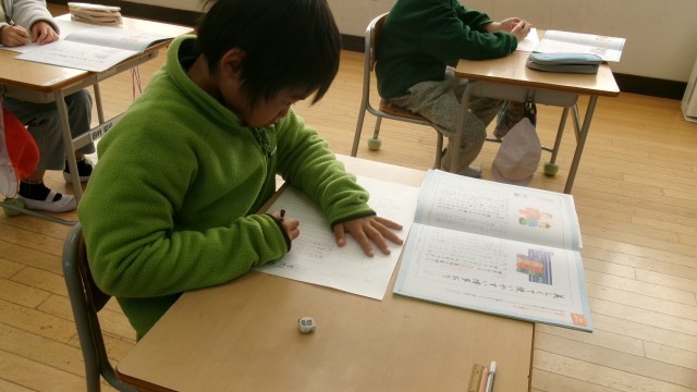 今日は書き方ノートの「リーフレットの書き方」にチャレンジしました。全員が姿勢良く書けていて、素晴らしいと思いました。やはり字は人の心を表すのだと思います。みんな上手に書くことができました。