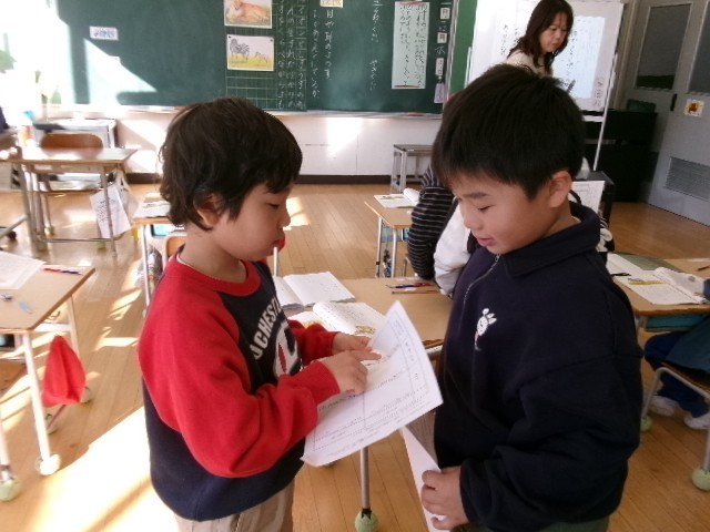 ライオンとしまうまの赤ちゃんの違いを教科書の文章から見つけてまとめていました。自分でまとめた後は、友達と伝え合っていました。