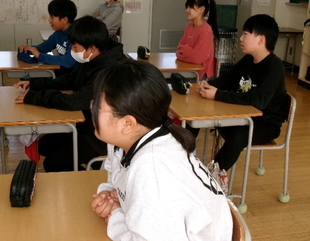 6年生は、3月に行われる「6年生を送る会」に向けて、どのようなことを発表するか考えていました。6年生になってからの学習や行事などを思い出し、学習の成果や自分たちの成長を伝える場面にしようと意欲的に取り組んでいました。