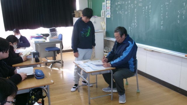 今日は硬筆に取り組みました。先生から指導された字の形の整え方を意識して書くことができました。