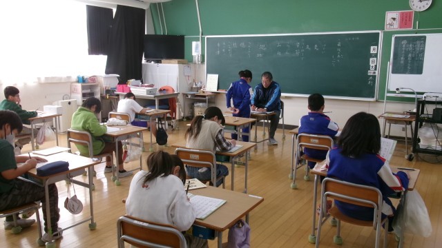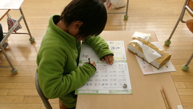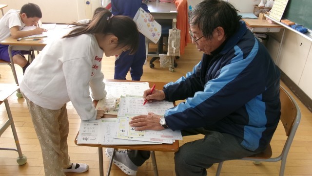 今日の書写は硬筆で、4年生のまとめとしてたくさん字を丁寧に書きました。何度も何度も消して書く児童、丁寧に一字一字書き上げる児童がいました。全員真剣に取り組んでいました。