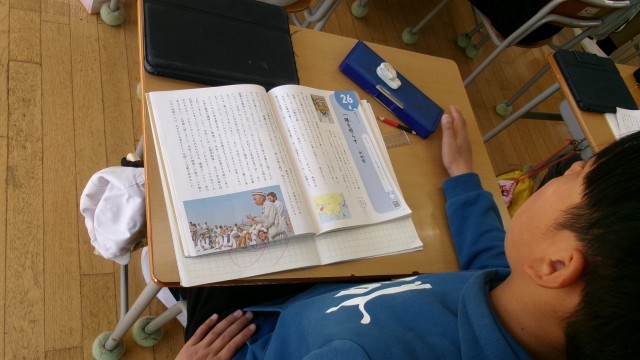 今日の道徳はアフガニスタンで用水路工事を手がけ、緑の大地をよみがえらせ、現地の人々に愛された医師「中村 哲」さんの資料を使った授業でした。子どもたちは中村さんの志にふれ、「すごい」と感心していました。