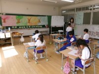 1年生はペアになって時計をよむ問題を出し合う学習をしていました。最後の問題を出し合うと、「楽しかった。」とつぶやいた児童もいました。授業の振り返りでは、