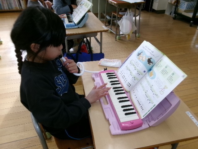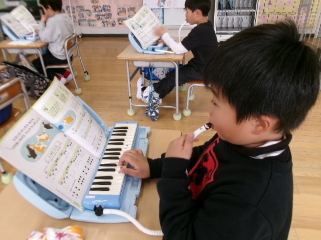 1年生はこいぬのマーチを指使いに気を付けながら、鍵盤ハーモニカで吹いていました。「もっと練習したい!」と、意欲的に吹いていました。