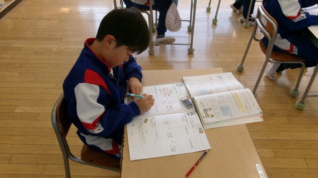 今日のめあては「2けたの数をかける計算の仕方を覚えよう」でした。昨日から学習している「2けたの数をかけるかけ算」はやり方を覚えたようです。すらすら練習問題に挑戦していました。