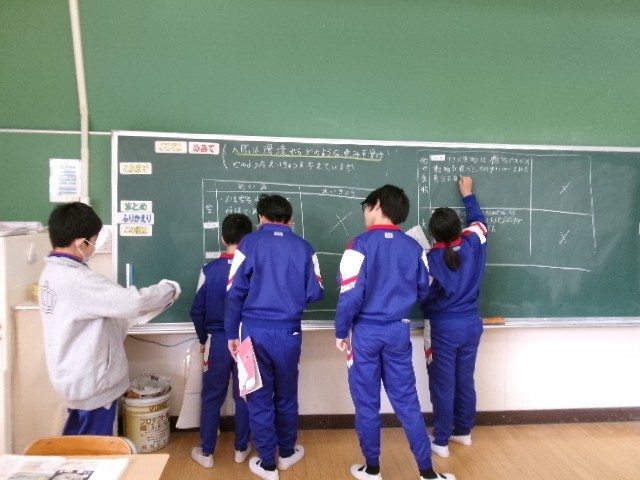 6年生は、「人間は環境からどのような恵みを受け、どのような影響を与えているか」をめあてに学習をしていました。