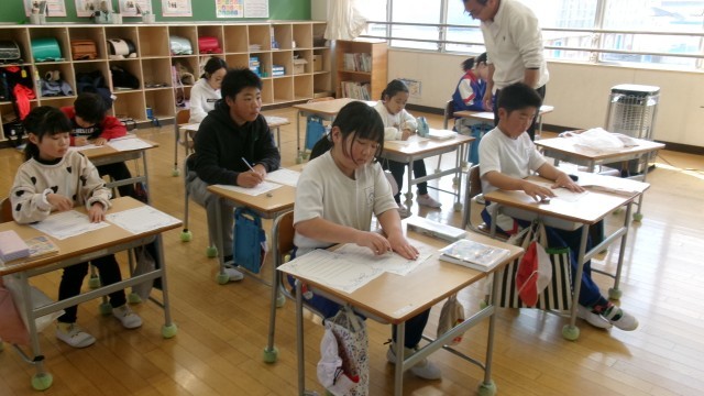 今日のなかよし集会は、1~5年生で卒業する6年生に向けて手紙を書く時間でした。嬉しかったのは、6年生のことを思い浮かべながら、真剣に手紙を書く姿でした。全員が真剣で、まさに思いやりをもった子どもに成長しています。