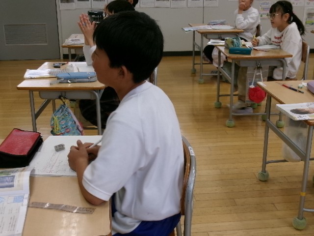 4年生は水が冷えて、氷になる時の温度や様子を調べる学習をしていました。次回は「水を冷やして氷になるまでの時間と温度を調べる」実験です。「氷水に何かを入れると、よく冷えるよ。」と、問題を出されると、すぐに「塩!」と、答えていました。次回の実験が楽しみです。