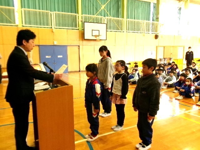 朝の活動は表彰でした。読書感想画やそろばんコンクール、教育長表彰などで活躍した児童を紹介しました。これからもさまざまなことに挑戦して、経験を積んで欲しいと思います。