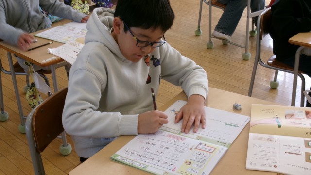 今日は硬筆の時間でした。落ち着いて一字一字丁寧に書いている様子が見られました。先生からコツを教えてもらって、さらに上手になってください。