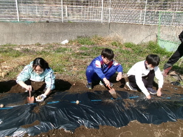 3月10日(火) 5年理科「ジャガイモ植え」【進んで学ぶ子】