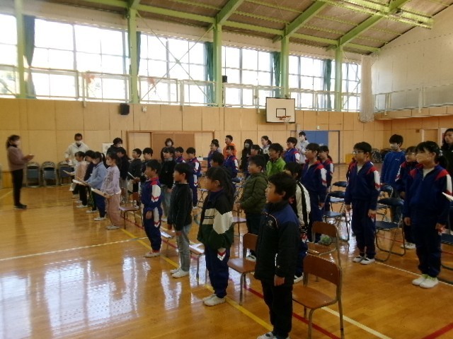 今日は、1~5年生が初めて揃って卒業式の練習を行いました。いつも優しく接してくれた6年生の晴れの門出を、祝福する気持ちで臨みました。立つ姿勢や礼の仕方、別れの言葉など、心を込めて練習をしていきます。