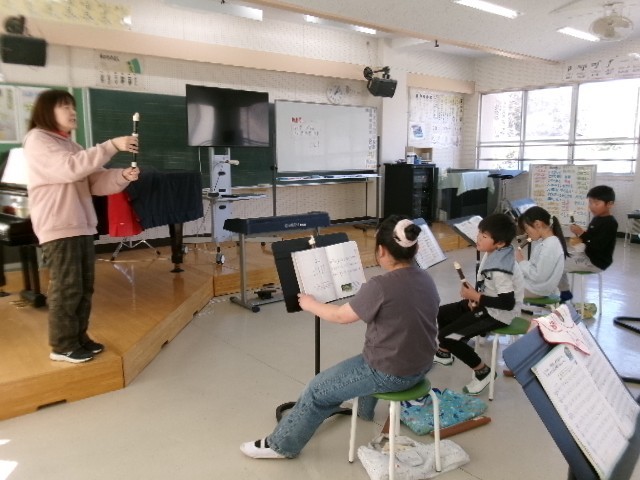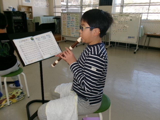 3年生は、エーデルワイスをリコーダーで吹いていました。指づかいに気を付けながらなめらかに吹いていました。