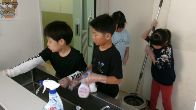 3.4年生は掃除分担箇所を決めました。そして、そのあとは4年生が3年生に掃除の仕方を教えながら掃除をする、という時間にしました。4年生がとても親切丁寧に3年生に教えてあげ、教えてもらう3年生も教えてもらったとおりに一生懸命取り組む姿がとても素敵でした。