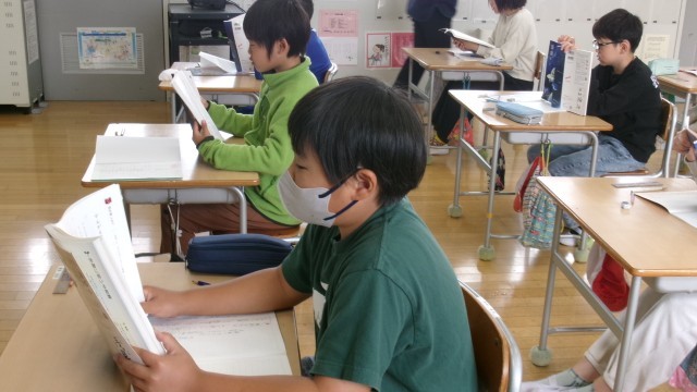 「かんがえるのっておもしろい」という詩について学習しています。この詩をどんなふうに読むとよいのか、詩に書かれていることを想像して考えました。最後は自分で考えた読み方で、音読することができました。