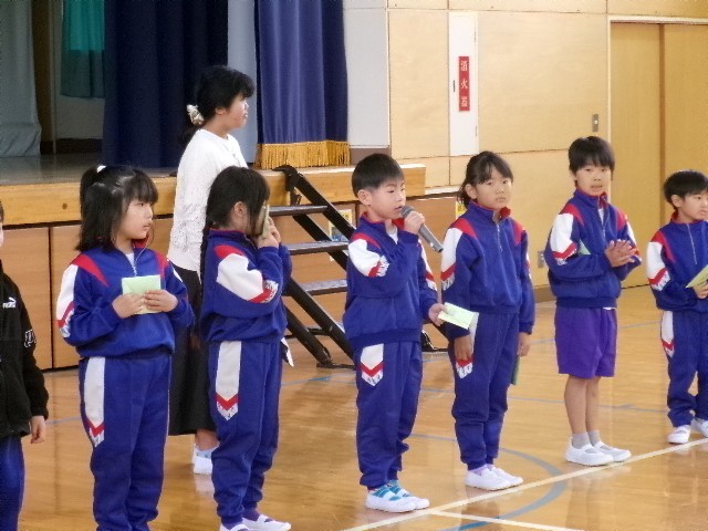 朝は1年生のための「お迎え集会」です。5年生が花のアーチを作ってくれた中を6年生と手を繋いで入場しました。それから2~6年生の代表の子が1年生に向けて心強く優しい言葉を伝えてくれました。その後は2年生からアサガオの種のプレゼントをもらいました。最後はみんなで「3時のおやつ」という遊びをして、盛り上がりました。上級生の皆さん、どうもありがとう。1年生がさらに鬼石小に来るのが楽しみになったことでしょう。