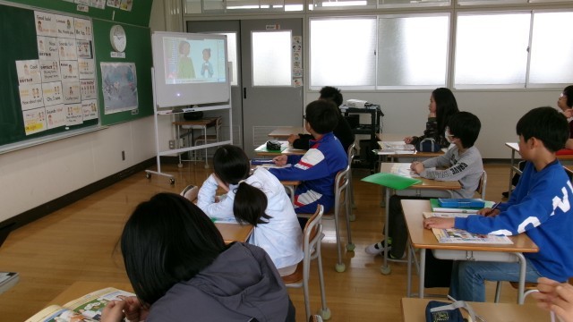 今日のOur Goalは「好きなものや宝物について紹介しよう」です。教科書の登場人物が何を言っているのか、聞き取りながら学習に取り組んでいました。リズムよく、テンポよく授業が進んでいきます。
