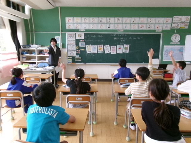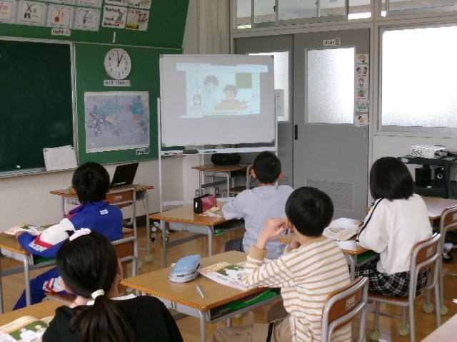 English Roomから元気な声が聞こえたので入ってみると、5年生がクイズに挑戦しているところでした。教科の名前を英語で答えるクイズを通し、楽しみながら英単語を覚えていました。その後は、アニメーションを見て自己紹介の仕方を確認しました。それぞれがどんな自己紹介をするのか、今から楽しみです!