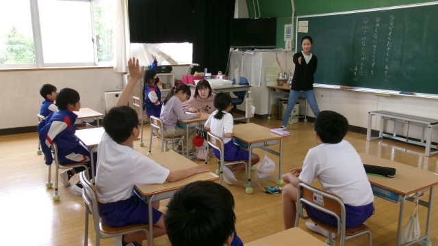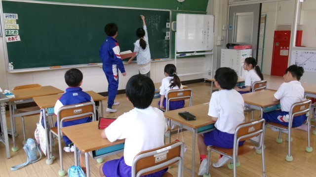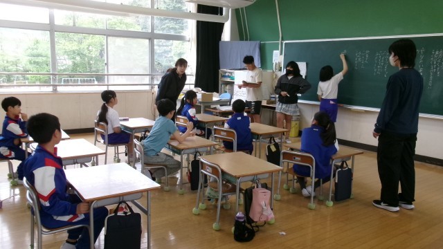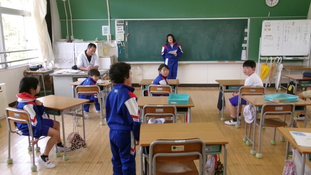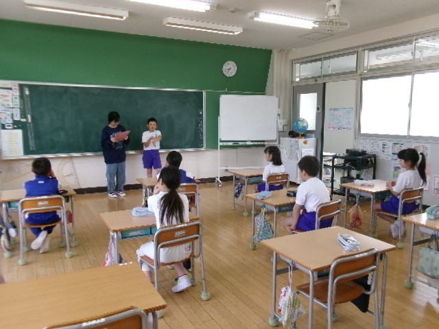 今日の朝は「なかよしタイム」です。全校を6班に分けて、たてわり班を作りました。そのたてわり班でこれから一緒に楽しく活動するために、今日は自己紹介をしました。それからどんな遊びをやりたいか、意見を出しました。