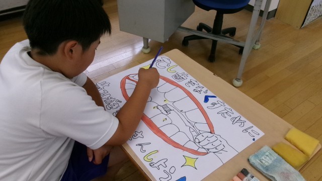 先週から取り組んでいる「むし歯予防ポスター」がそろそろ完成に近くなってきました。下描きはだいたい描き上がり、色塗りもずいぶん進んでいる子もいます。一人一人が自分の作品に一生懸命向き合っているのでいいものができあがりそうです。