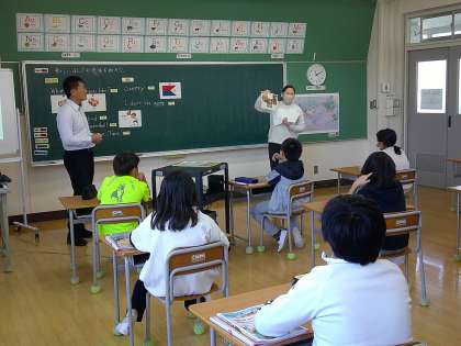 今年度お世話になるALTのアイリン先生のはじめての授業です。今日はアイリン先生のことを知るために、子どもたちが英語「What ○○ do you like?」で質問をしました。アイリン先生と同じ誕生日だった児童がいて、その偶然にみんなでビックリしていました。大きな声で楽しいそうに英語でやりとりをしていました。